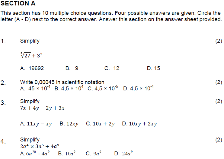 QUESTION 4 (Exponents )