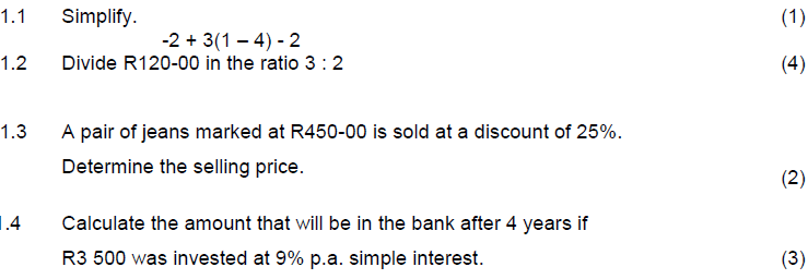 QUESTION 1 ( Whole numbers - Number Patterns)