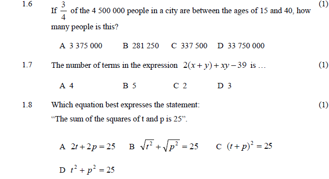 QUESTION 7 ( Equations )