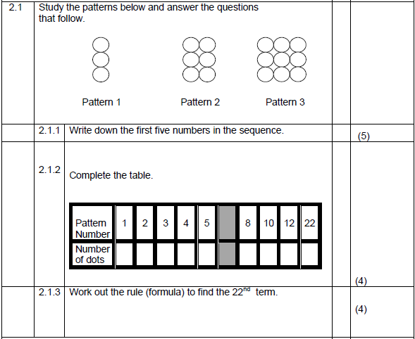 QUESTION 4 (Number Patterns )