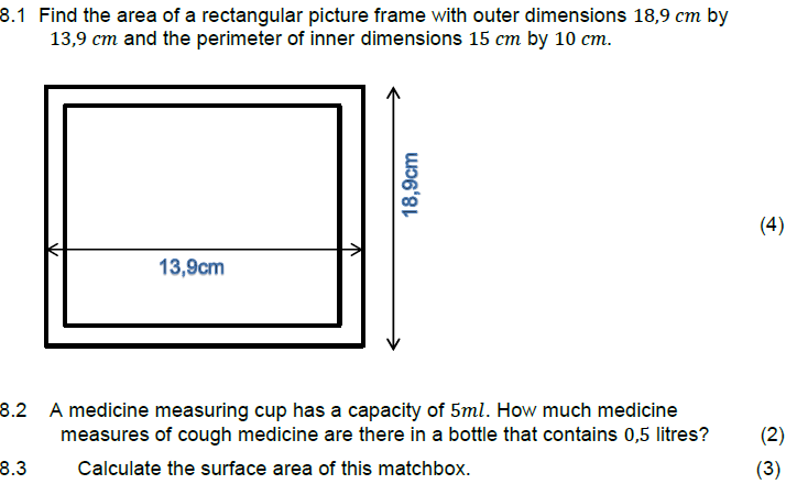 QUESTION 8 ( Area - Perimeter - Volume )