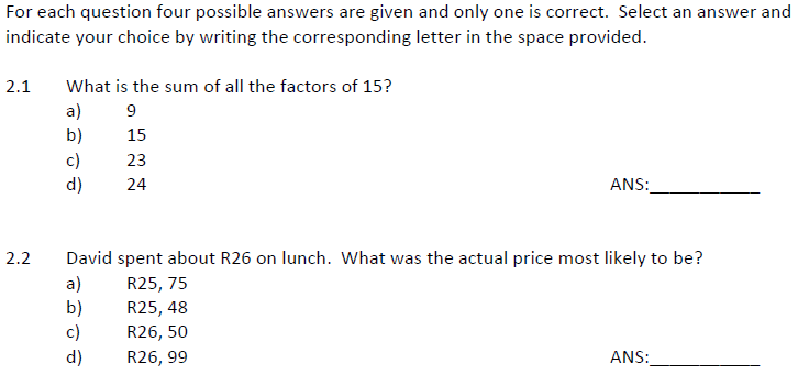QUESTION 2 ( Whole Numbers - Chapter 1)