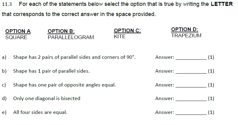 QUESTION 7 ( Geometry )
