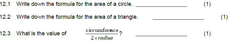 QUESTION 12 ( Area - Perimeter - Volume )